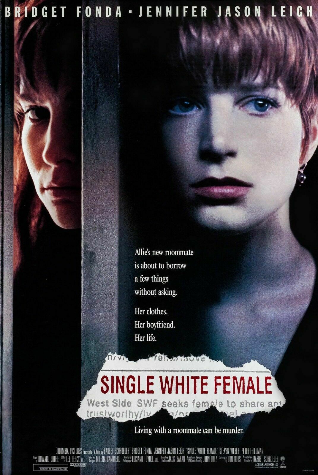 French based director Barbet Schroeder started his American directorial career with "Barfly", and quickly established himself with the great "Reversal of Fortune". "Single White Female" was his first big commercial success, written by the talented Don Roos (who would go on to write and direct "The Opposite of Sex" and "Happy Endings"). The film follows the story of Allison Jones, a young woman living in NY, who is currently engaged and about to start her own business (she's a software designer). She finds out her fiancée had a fling with his ex-wife, and decides to cancel all the plans they had together. Due to the new circumstances, she decides to place an add for a roommate. She settles on a quiet and somewhat shy, Hedra Carlson. She quickly learns Hedra had a twin who died when she was a child, and that is an event who scarred her life. The two quickly bond, and Hedy becomes increasingly obsessed with Allie, getting her a dog, and deflecting all attempts of communication her ex-fiancée tries to establish. When Allie and Sam decide to reunite, that causes Hedy to become increasingly territorial and jealous. She decides to stop at nothing to keep Allie all to herself.