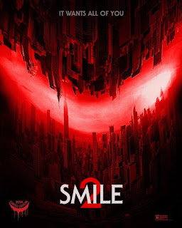 Writer/director Parker Finn is back, following the critical and commercial success of the first "Smile". The sequel has benefited from a bigger budget, which has expanded his stylistic and narrative choices as well. This time around the narrative focuses on Skye Riley, a well known pop star, who is back in the limelight, and about to start her comeback tour, following a brutal car accident, from which she barely escaped, and which claimed the life of her boyfriend/partner. Skye at the time was also dealing with addiction, from which she has recovered, though her mom Elizabeth and her assistant Joshua, keep a close eye on her. While going through her dance routine for her concerts, Skye has some pain issues, also a result of the car accident. Due to her issues with addiction, she hasn't been able to get prescriptions for painkillers, but has found them through a dealer friend of hers, someone she's known since high school, Lewis. She goes to his place looking for additional vicodin, but finds him in a completely stressed and out-of-his mind mental state. He's incoherent, and after freaking out, bares a sinister grin, before killing himself right in front of her. She flees his apartment, but starts having horrible nightmares and hallucinations, where people are baring a creepy grin/smile at her. She also gets texts from an unidentified source, claiming to know what is happening to her, and what happened with Lewis. As her visions/hallucinations keep getting worse, and following a public meltdown, she agrees to meet with this person, who turns out to be a male nurse by the name of Morris, who explains to her, that there's a demon who is like a parasite that has latched on to her. This entity will keep tampering with her mind, eventually killing her (before jumping to someone else, another host). Skye is terrified, but after another gruesome episode she agrees to the plan Morris has suggested. However much to her surprise, not all is what it seems.